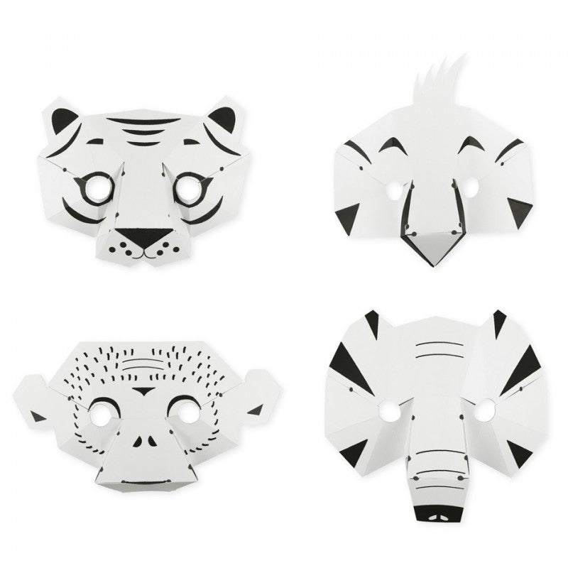 Each paper mask is assembled using elastics (Elastiblock® patented system). They are then ready to be colored according to your imagination !