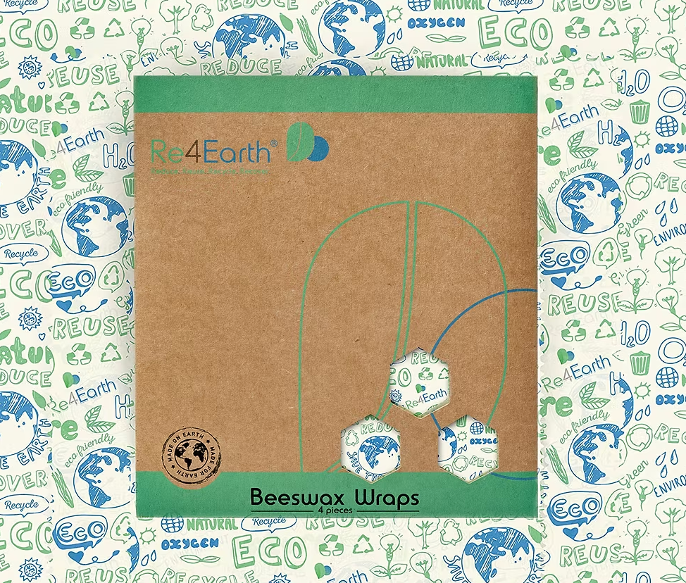 Set of 4 Beeswax Wraps / Σετ 4 Κερομάντηλa τροφίμων - Squarred